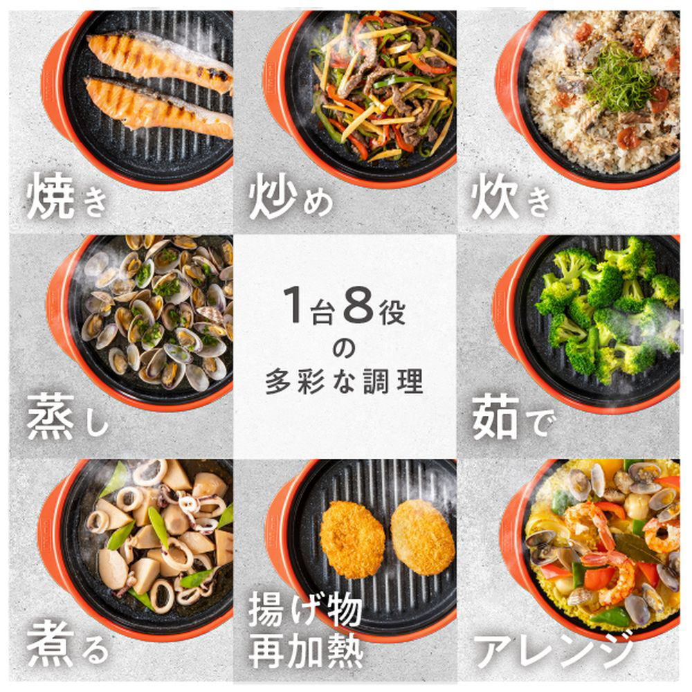 トーストやパスタ、ハンバーグ、さらにお弁当のおかずも同時に作れて時短調理。毎日の食事づくりをもっと快適に。