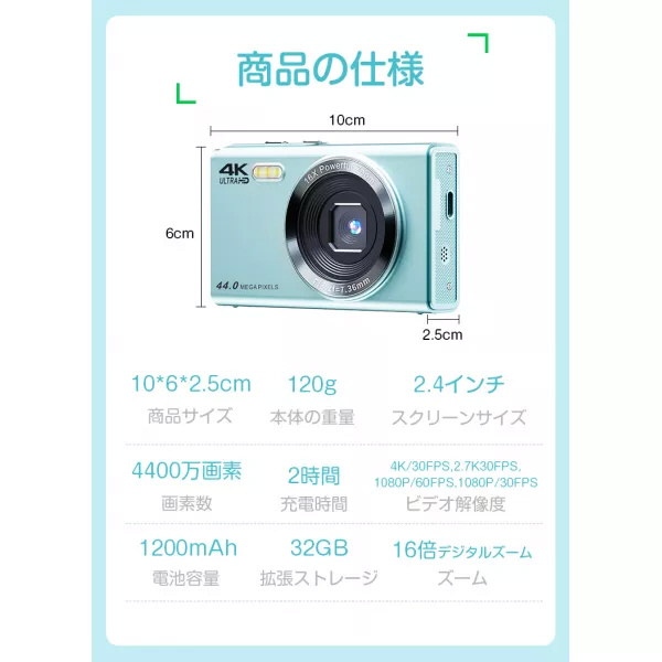 | 商品名 | デジタルカメラ 4400万画素 4K録画 32GBカード付 ピンク |