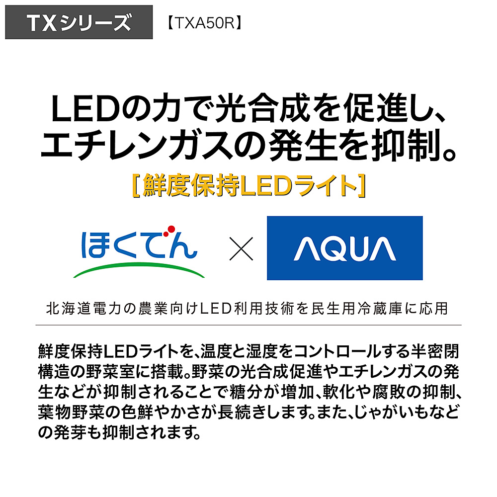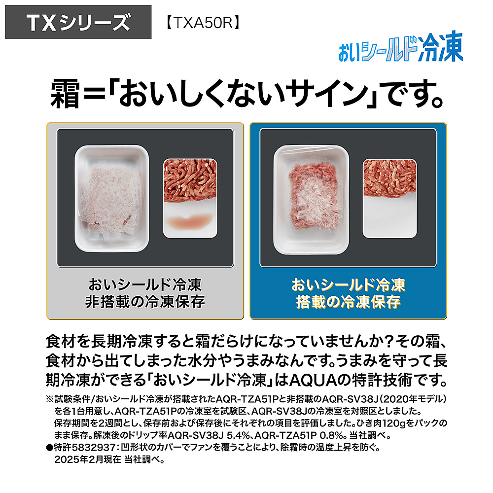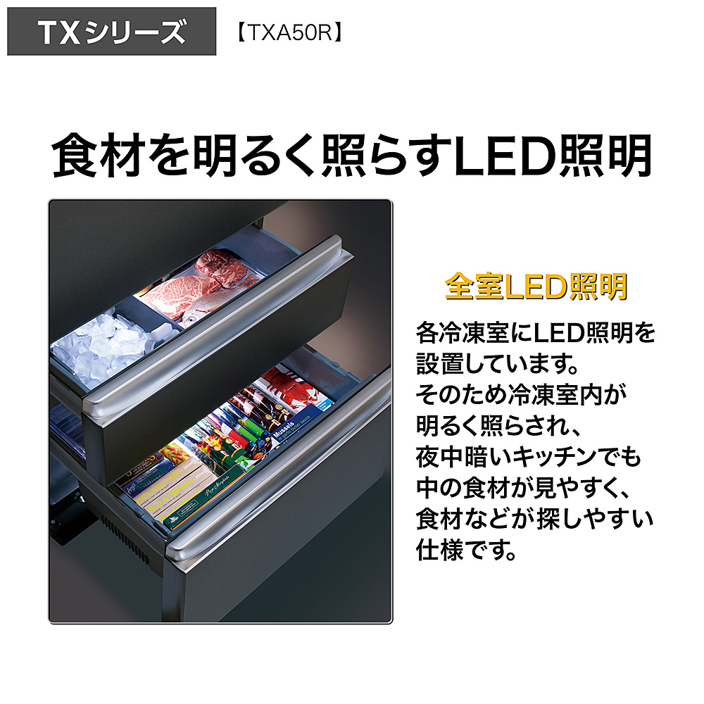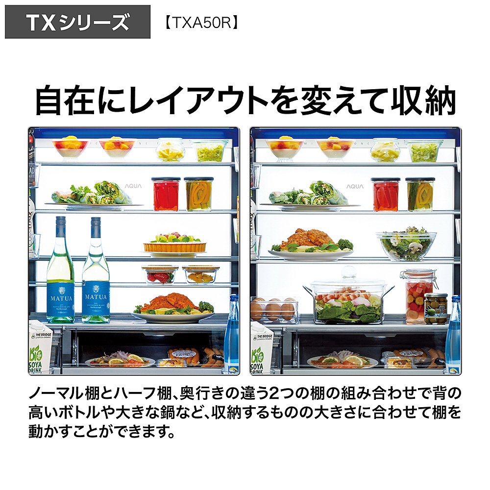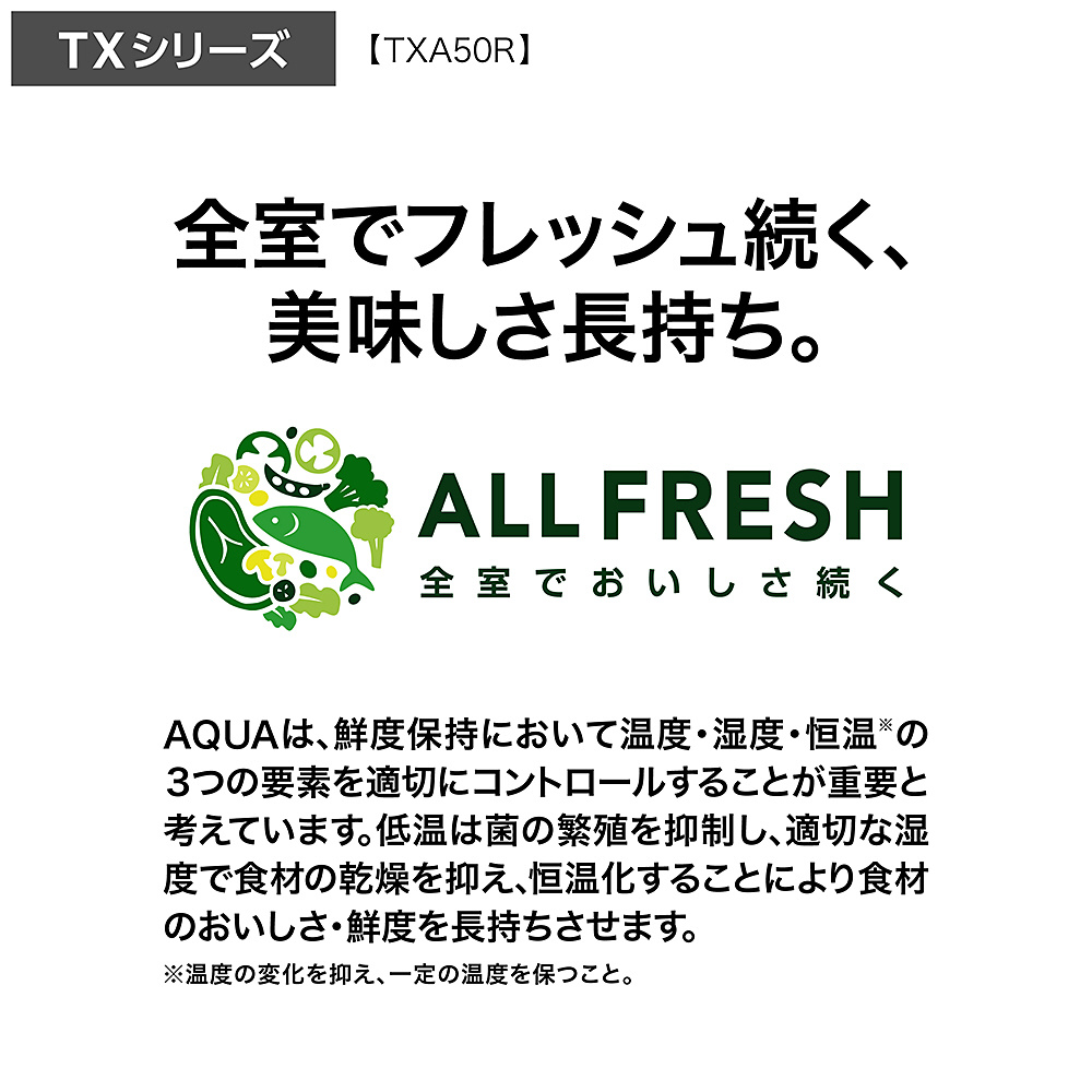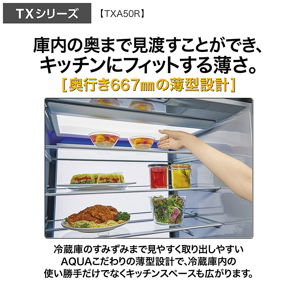 | 商品名 | 冷蔵庫 マットクリアホワイト AQR-TXA50R(W) [70 /501L /5ドア /観音開きタイプ /2025年] 【基本設置料金セット】 【買い替え10000pt】 |