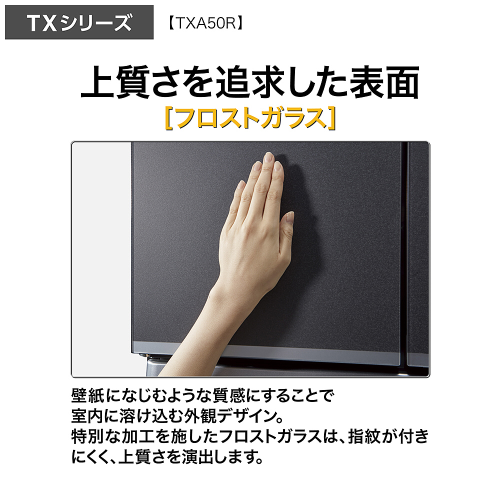 壁紙になじむような質感にすることで室内に溶け込む外観デザイン。特別な加工を施したフロストガラスは、指紋が付きにくく、上質さを演出します。