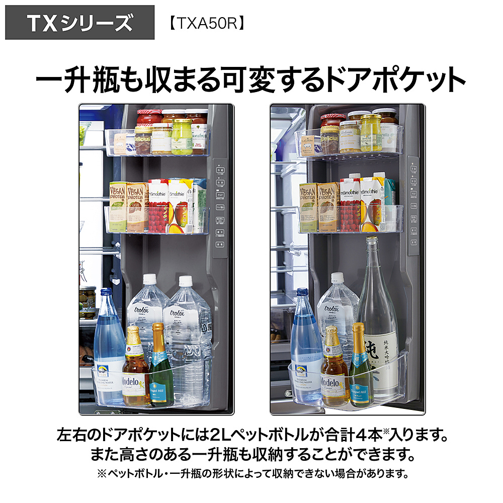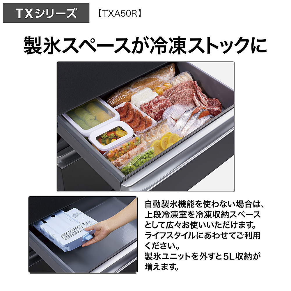 冷蔵庫 マットクリアブラック AQR-TXA50R(K) [幅70cm /501L /5ドア /観音開きタイプ /2025年] 【基本設置料金セット】 【買い替え10000pt】