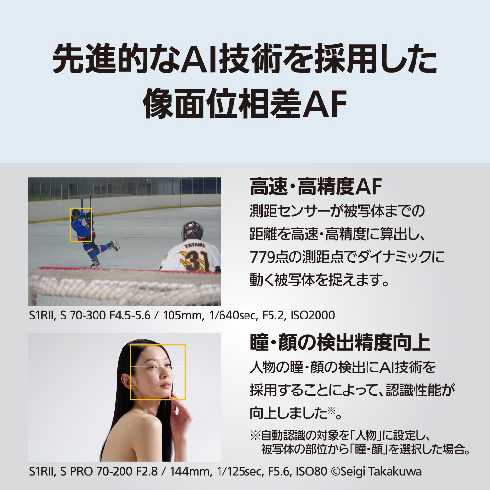 ・AI技術により人物の瞳・顔検出性能と追尾性能が向上したリアルタイム認識AF