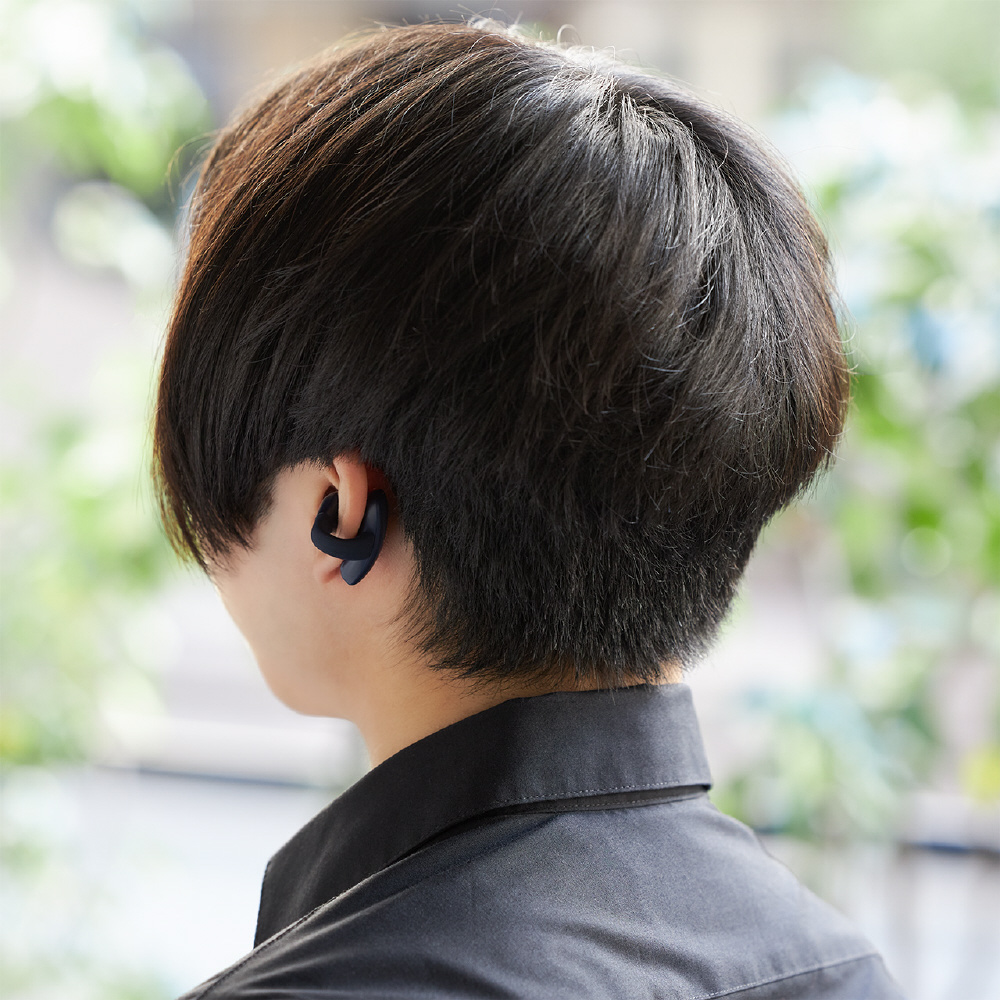 片手で簡単に着脱できる優れた装着性と、「ながら聴き」を両立するイヤーカフ型を採用。