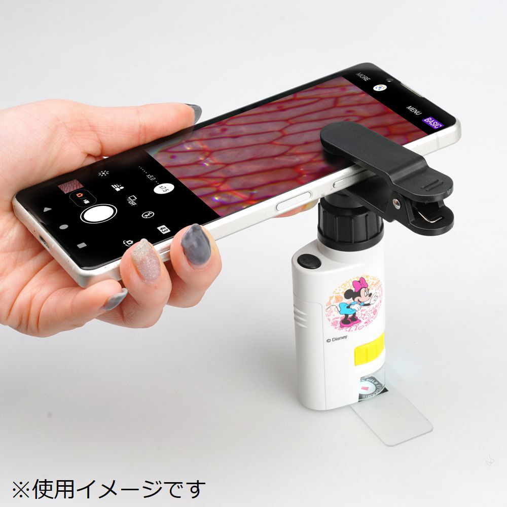 スマートフォンを取り付けて撮影可能な、ハンディ型顕微鏡。