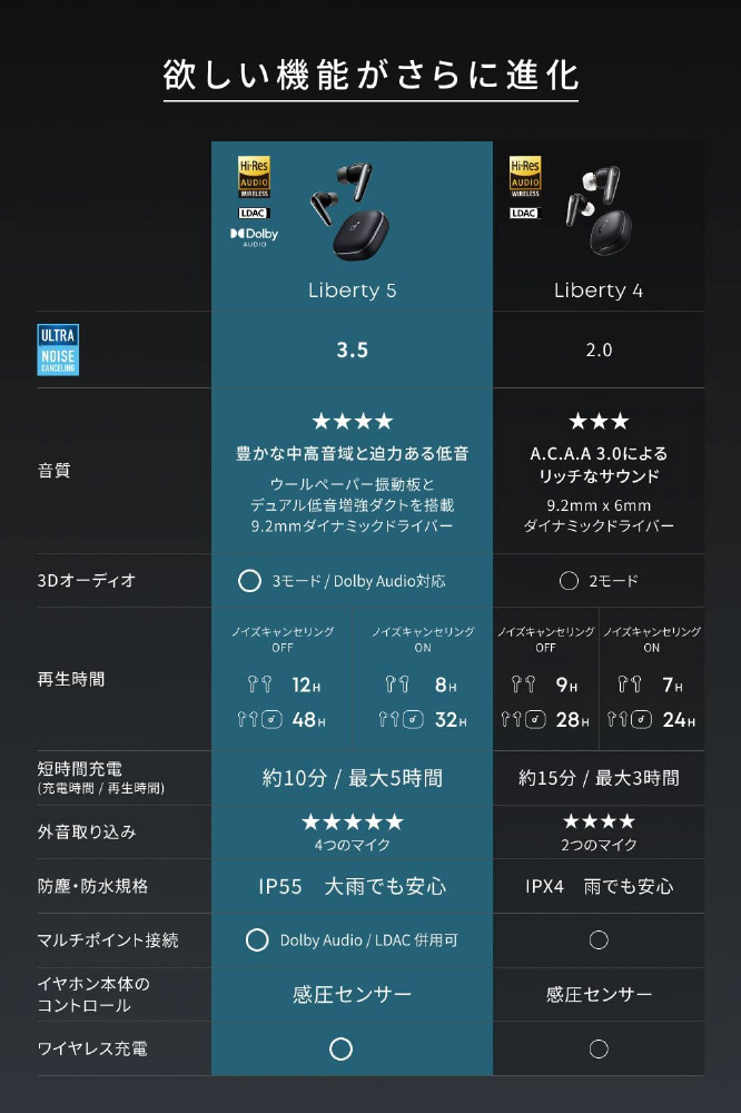 ベストセラー※Liberty 4の次世代モデル※Soundcoreの完全ワイヤレスイヤホン内における単体製品での販売金額として過去最多 (2025年4月時点での自社調べ)