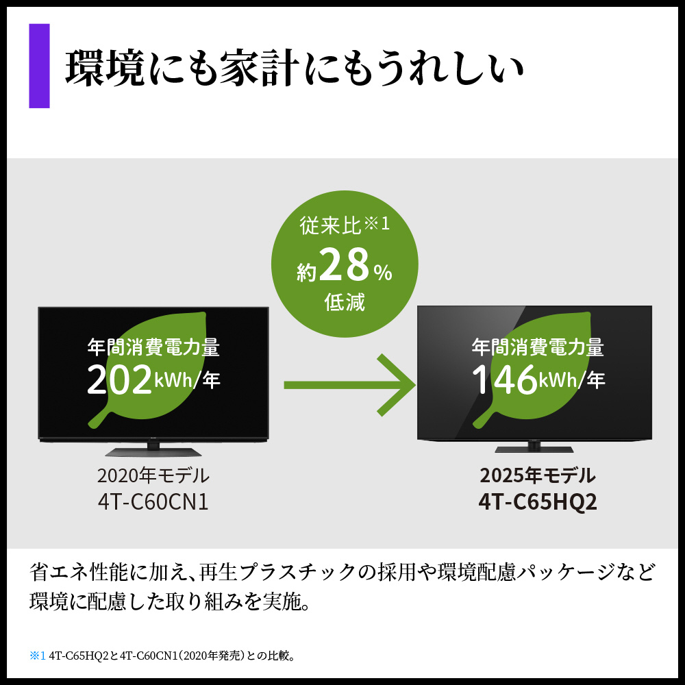 有機ELテレビ AQUOS 4T-C65HQ2 [65V型 /Bluetooth対応 /4K対応 /BS・CS 4Kチューナー内蔵 /YouTube対応]
