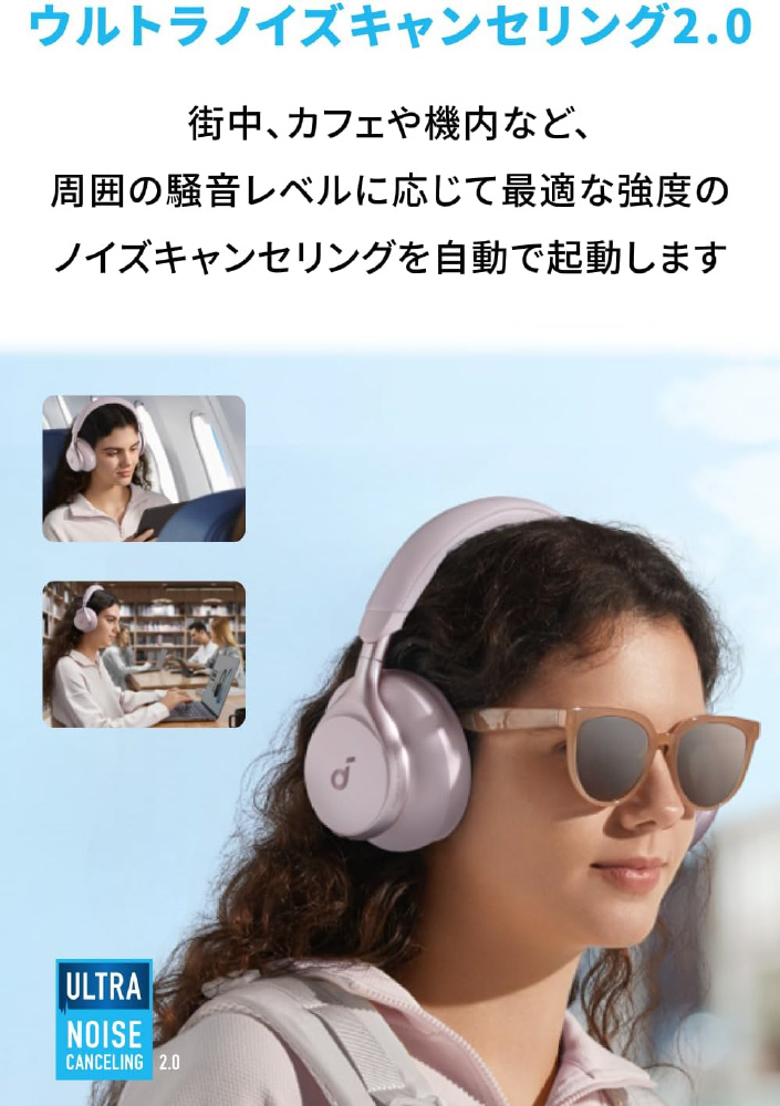 美しく頭にフィット。快適な装着感とウルトラノイズキャンセリング 2.0を備えたワイヤレスヘッドホン