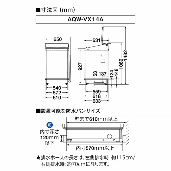 | 設置可能防水パン | 奥行内寸570mm以上 |