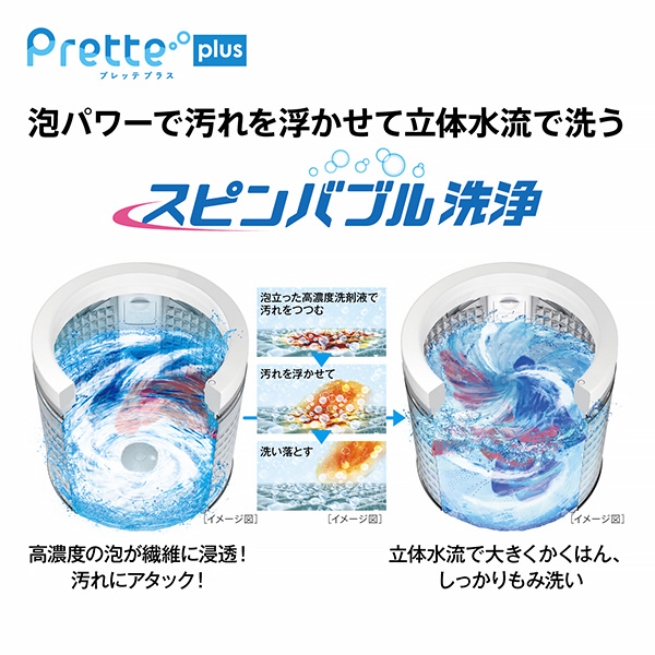 低水位時に洗濯槽を高速回転させて、高濃度の洗浄液で泡を生成。
