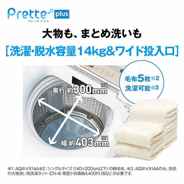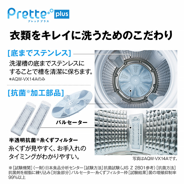 | 商品名 | 全自動洗濯機 ホワイト AQW-VX14A(W) [洗濯14.0kg /簡易乾燥(送風機能) /上開き] |