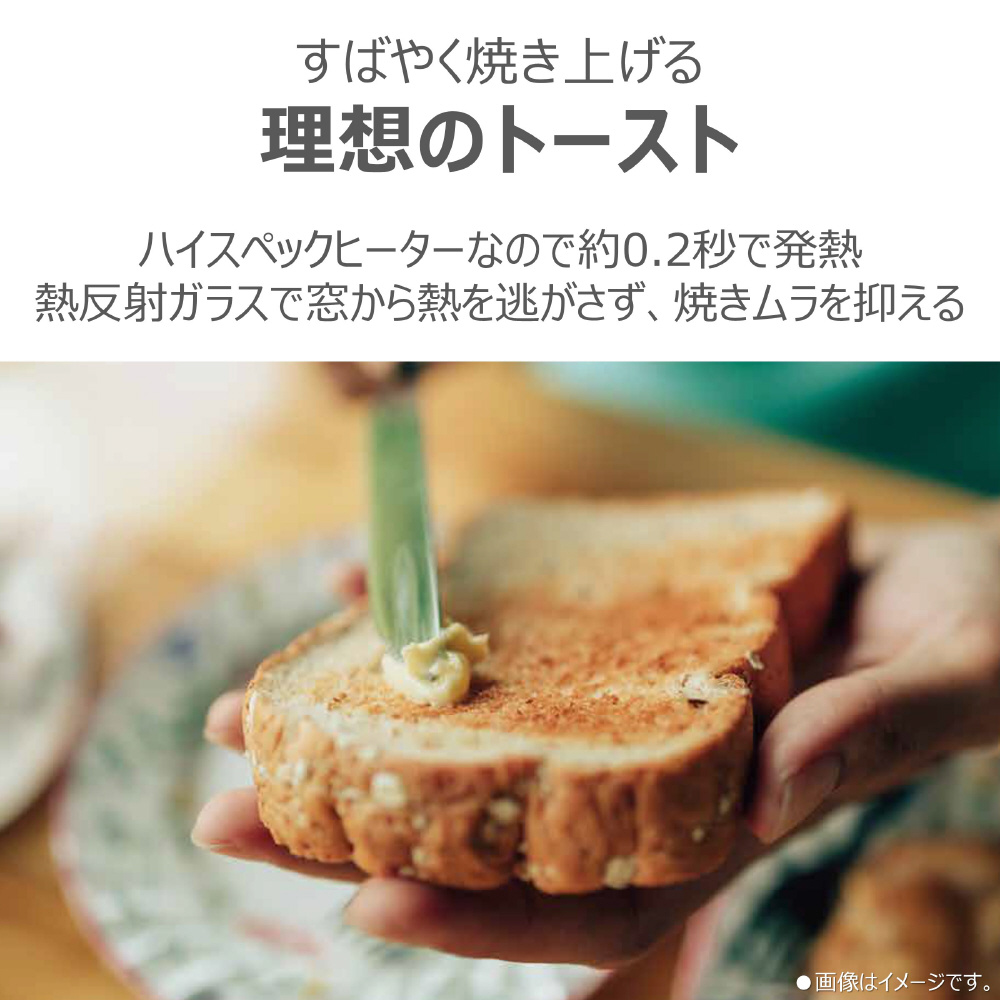 東芝のオーブントースターは、黒鉛素材ヒーターで、サクッとおいしいトーストが約90秒で完成。