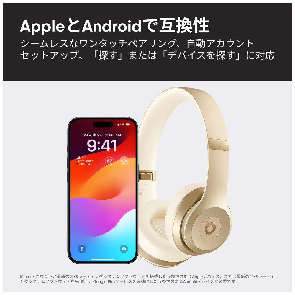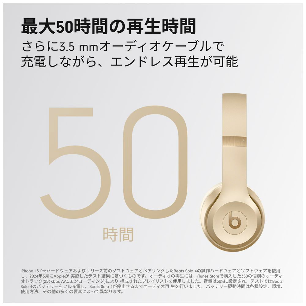 音楽を愛するアクティブな人のためのヘッドフォン、さらなる進化を遂げて再登場。安定した着け心地、思わず体が動くパワフルなサウンド。Beats Solo 4 オンイヤーワイヤレスヘッドフォンは原音に忠実なサウンドを届けるために再設計されました。パーソナライズされた空間オーディオとヘッドトラッキングで没入感あふれる体験を。