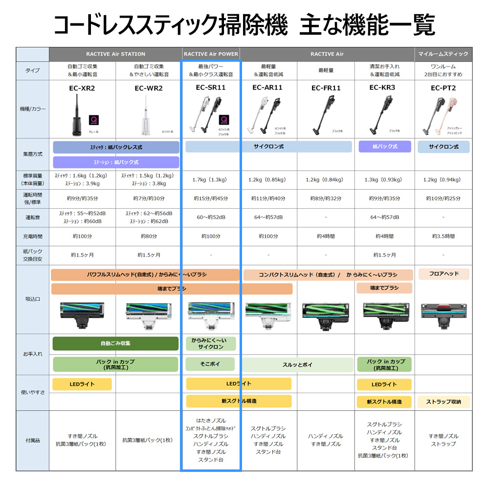 【この吸引力で、この運転音】掃除機EC-SR11の紹介:シャープ