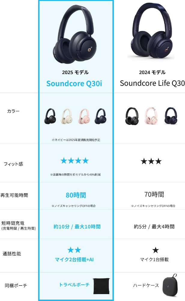 ブルートゥースヘッドホン Soundcore Q30i ネイビー A3028N34 [Bluetooth対応]