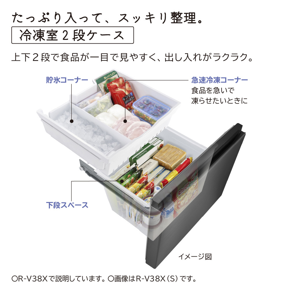 冷蔵庫 Vタイプ ライトゴールド R-V38XL-N [幅60cm /375L /3ドア /左開きタイプ /2025年] 【基本設置料金セット】