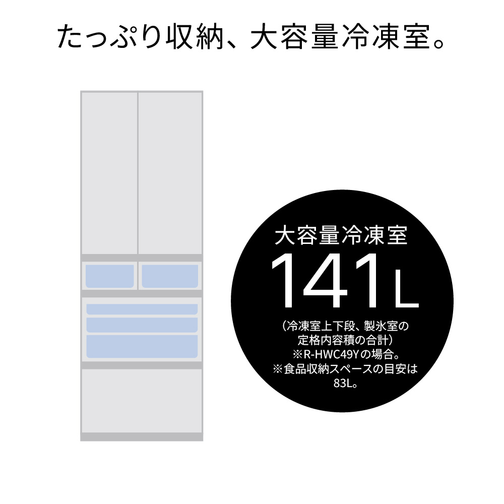 冷蔵庫 HWCタイプ ブラストモーブグレー R-HWC49Y H [幅65cm /485L /6ドア /観音開きタイプ]【基本設置料金セット】 【買い替え10000pt】