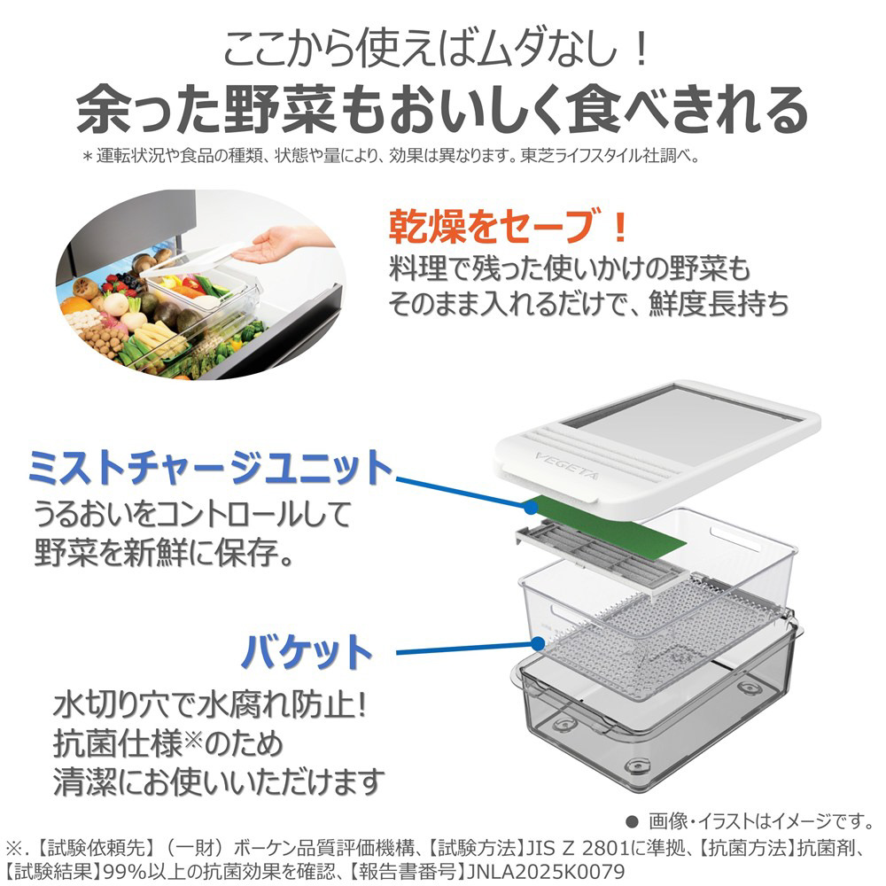 東芝独自のツイン冷却システムで、温度変動を抑えて乾燥や霜付きを防いで食感やうまみ成分をキープ。