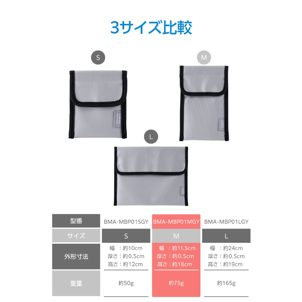商品名 難燃ポーチ 折り込みタイプ ポケット付属 Mサイズ グレー BMA-MBP01MGY