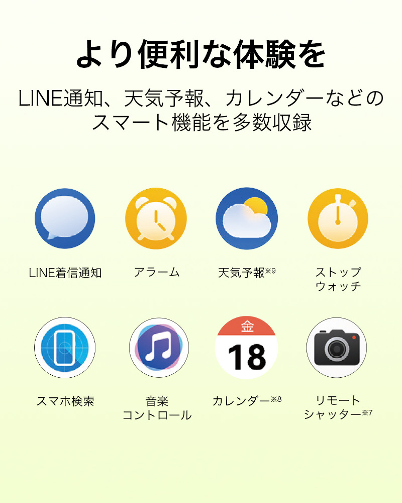 約1.62インチ、60HzのAMOLED(有機EL)ディスプレイは、画面サイズが約27%拡大し、輝度は最大1500ニトと大幅に明るくなりました。強い日差しの下でも、すべての情報が一目でくっきりと確認できます。