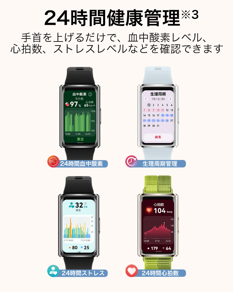 約1.62インチ、60 HzのAMOLED(有機EL)ディスプレイは、画面サイズが27%拡大し、輝度は最大2000ニトと大幅に輝度が向上しました。眩しい日差しの下でも、すべての情報が一目でくっきりと見えます。
