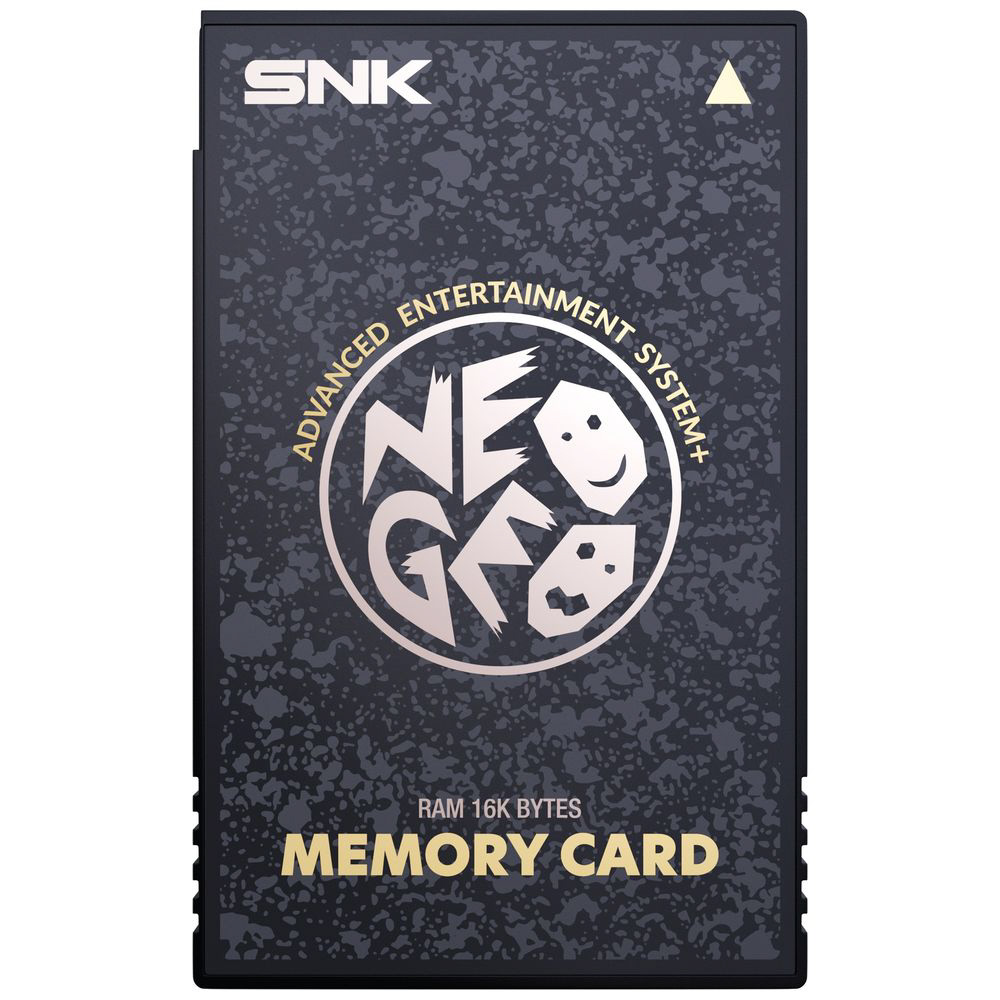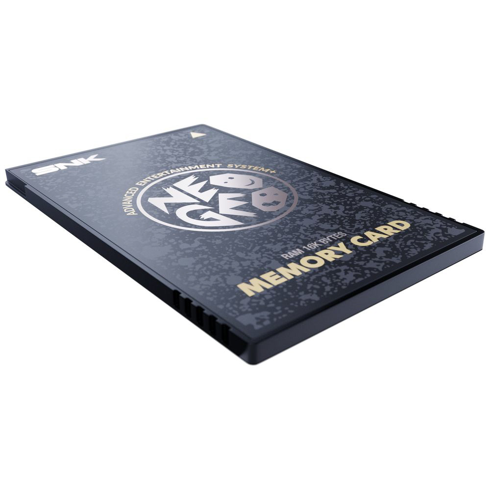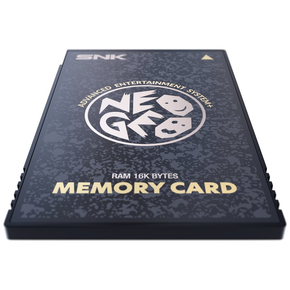 NEOGEO AES+ 本体用に設計されたこのメモリーカードは、対応するタイトルのゲームデータ、ハイスコア、プレイ進行状況を保存可能。