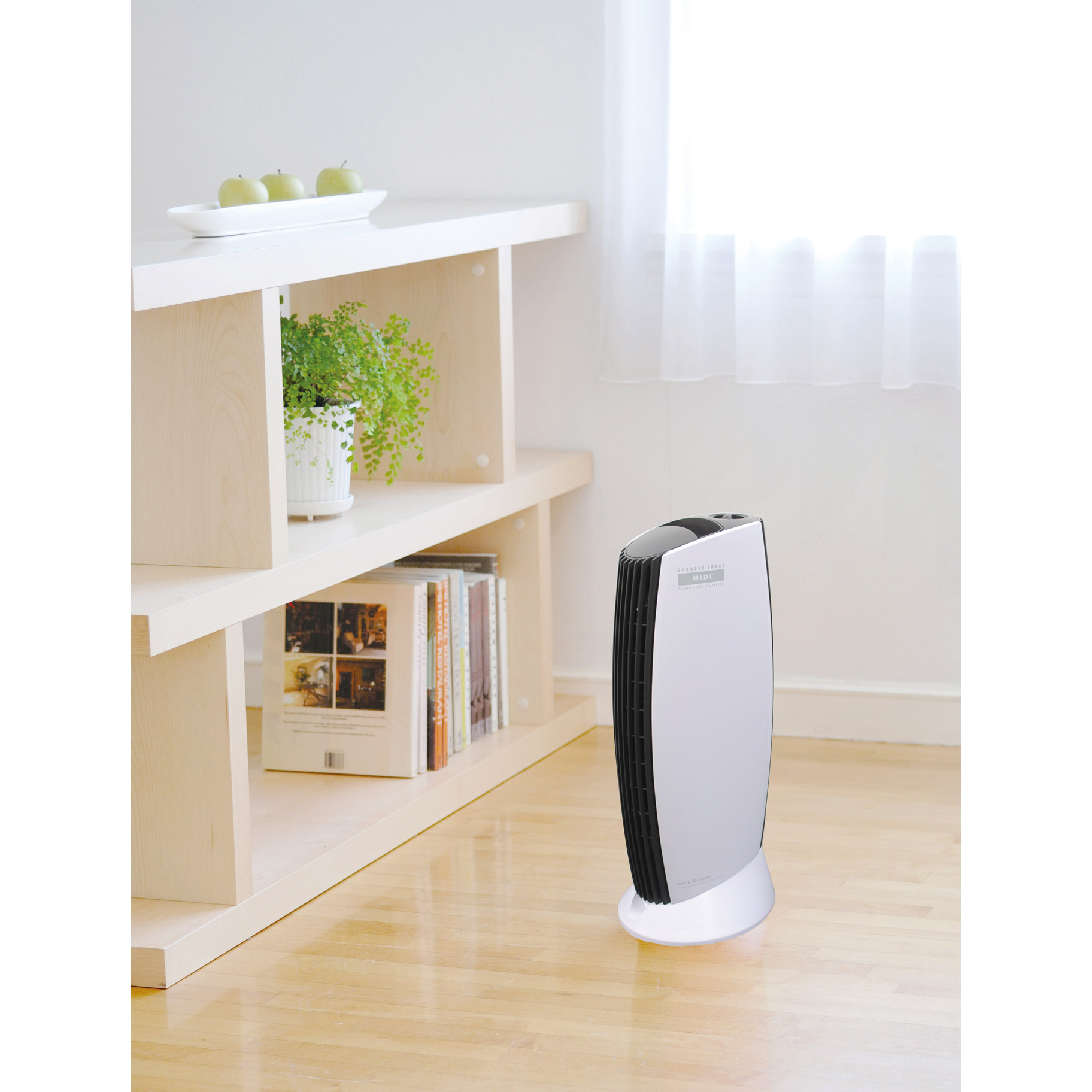 イオニックブリーズは、モーターやファンを使用せず、電子的に空気循環をさせることにより、空気中の細かい微粒子を除去します。