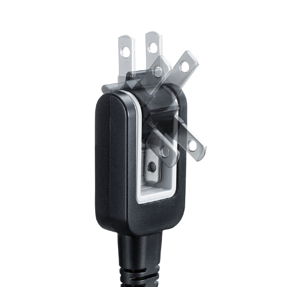 プラグ収納式スイングプラグ付きメガネ型コネクタ対応電源コード。各社ノートパソコン、周辺機器などのACアダプタ用電源ケーブルとして使用可能。5m。