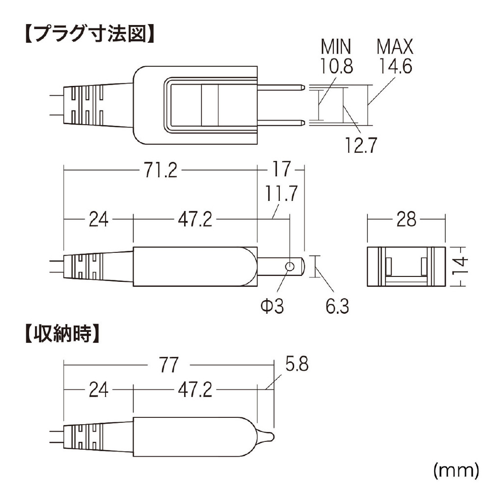 ■トラッキング火災予防絶縁キャップが付いた安全なプラグ収納型電源コードです。プラグが収納されているので、持ち運びにも便利です。