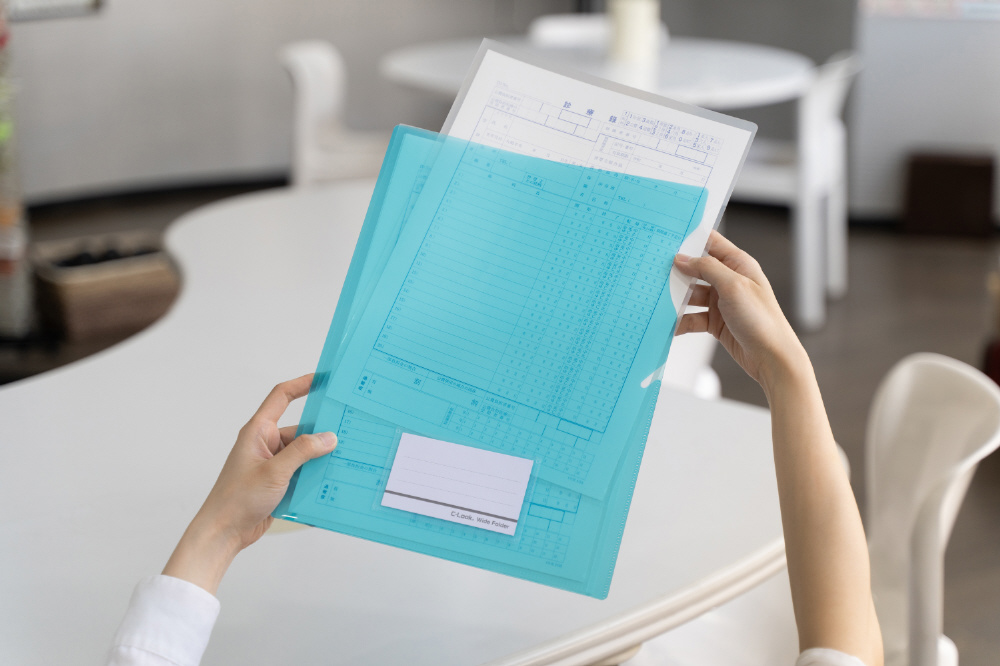 入れた書類が抜け落ちにくい、A4ワイド幅のクリアホルダー