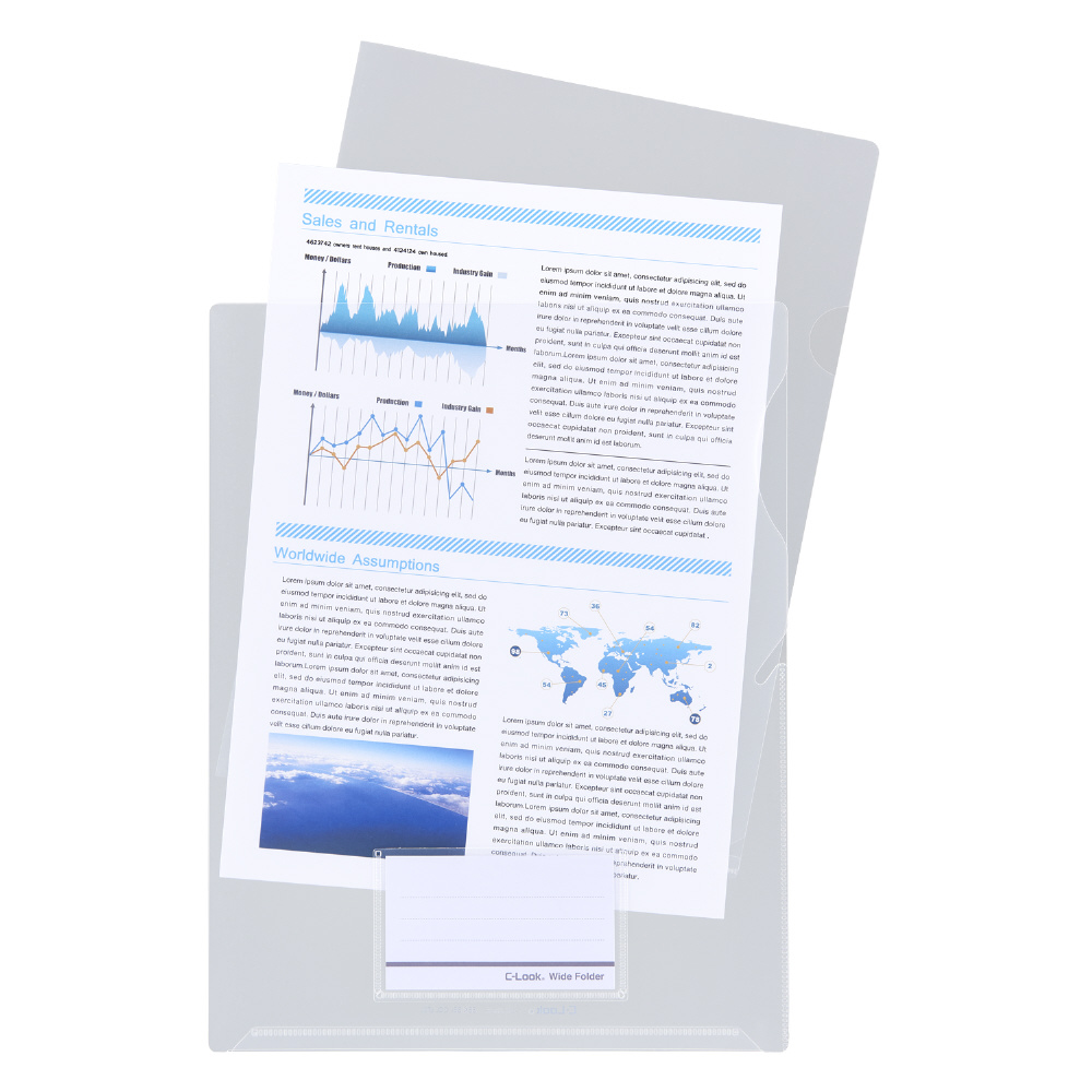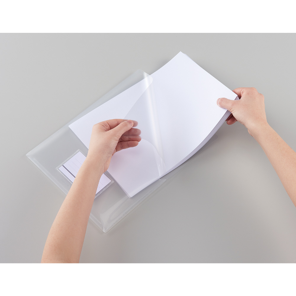 入れた書類が抜け落ちにくい、A4ワイド幅のクリアホルダー