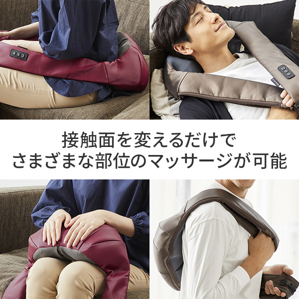大小2つのもみ玉があなたのコリや疲れをしっかりほぐします。 また、もみ玉の回転方向やスピードを切り替えることで、お好みに合わせたもみ心地をお楽しみいただけます。充電式なので、充電後は持ち運びも可能。場所を選ばずいつでもどこでも、コードレスでご使用いただけます。