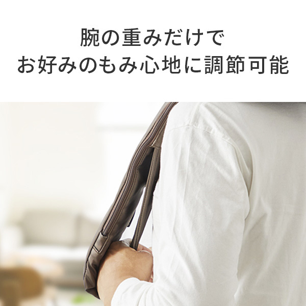 輪の端が肘のあたりになるよう計算されたアームホルダーに腕を通すことで、力を入れず腕の重みだけでお好みのもみ心地に調節してご使用いただけます。