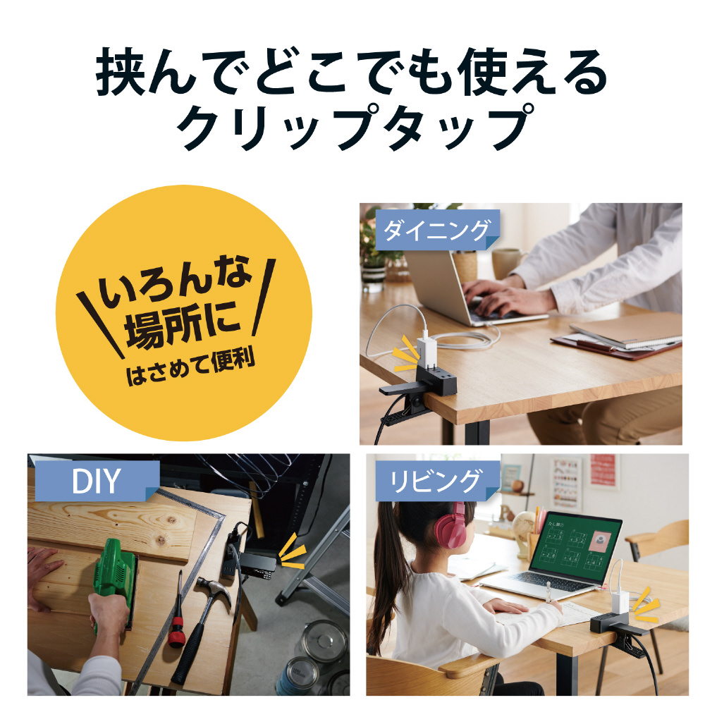 ■タップを常設できないダイニングテーブルなどでテレワークや宿題をする際に、一時的に設置して利用するのに便利です。