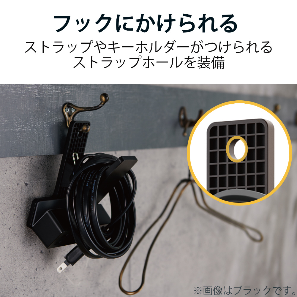 ■下グリップには直径10mmの吊り穴を搭載しており、使用しない時に壁のフックなどに掛けて収納することができます。