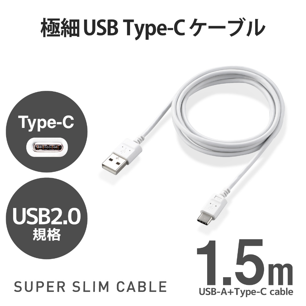 USB Type-Cケーブル/スマホ用/USB(A-C)/極細 ホワイト MPA-ACX15WH