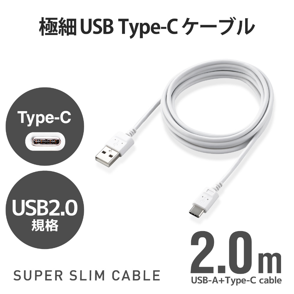 | 商品名 | USB Type-Cケーブル/スマホ用/USB(A-C)/極細 ホワイト MPA-ACX20WH2 |