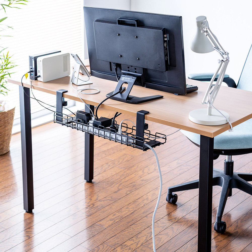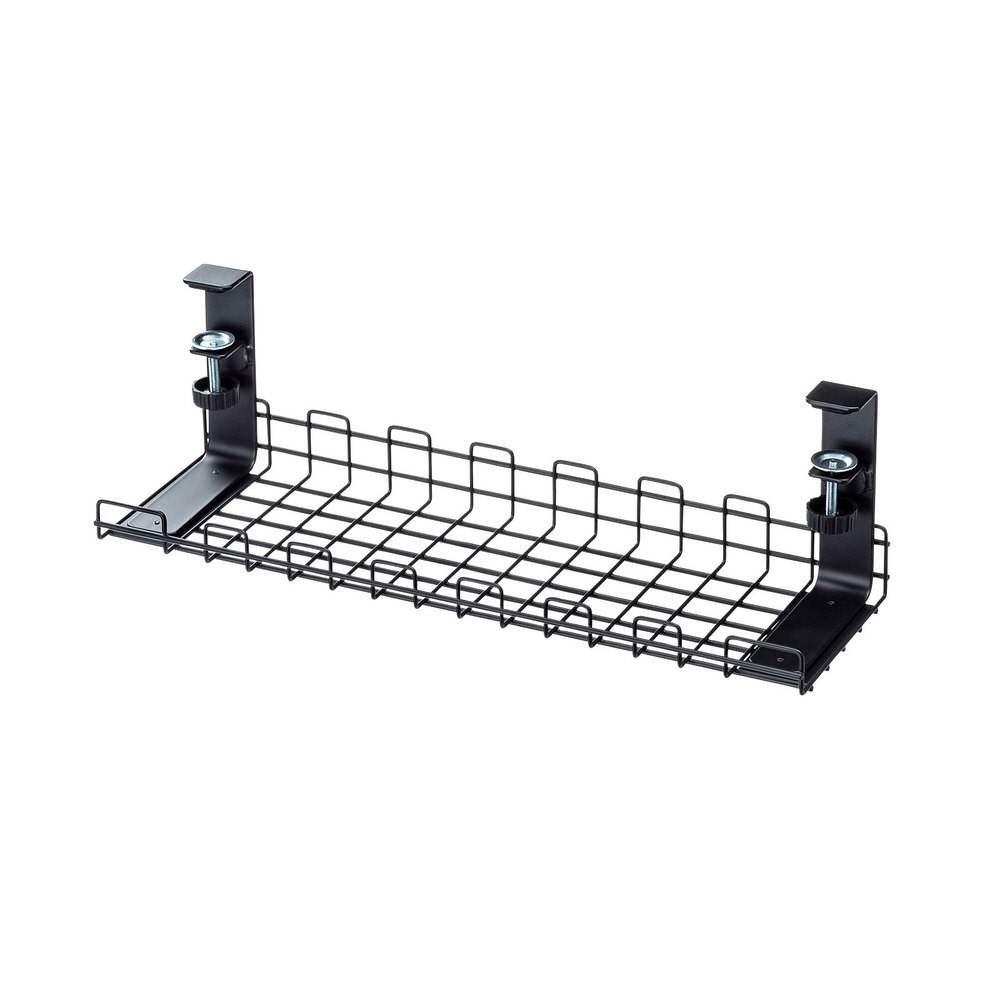 デスクに取り付けて、タップやケーブルなどを収納できるケーブル配線トレー。Sサイズ・ワイヤータイプ・ブラック。