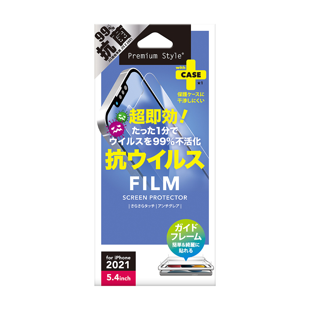 iPhone 13 mini対応 5.4inch 液晶保護フィルム 抗ウイルス・抗菌 Premium Style PG-21JKH01
