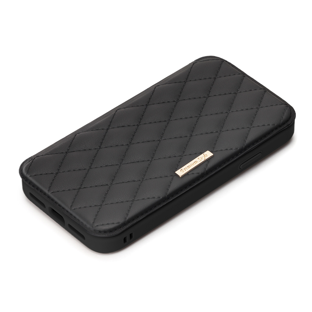 | 商品名 | iPhone 13 Pro 対応 6.1inch 3眼 ガラスフリップケース Premium Style キルティング調ブラック PG-21NGF07BK |