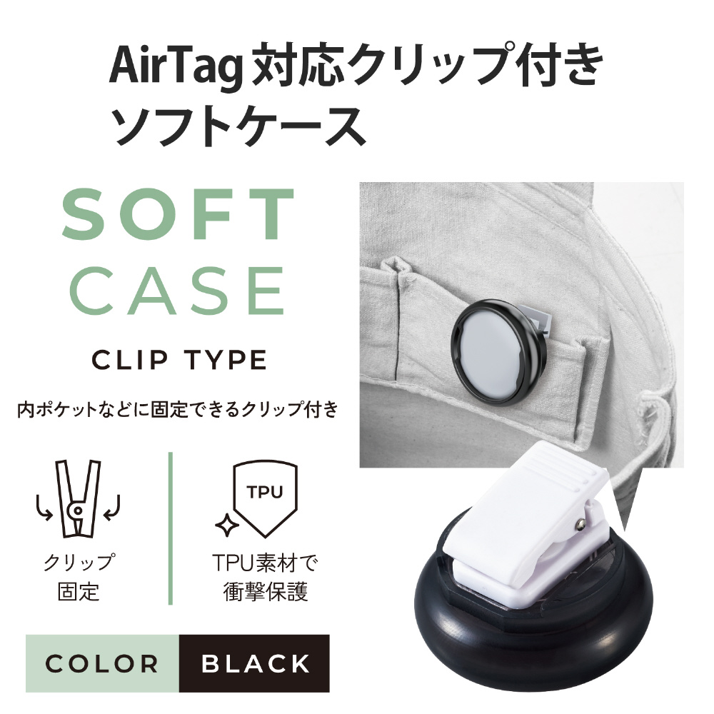■ポケットなどに挟んで固定できるクリップがついた、透明性のあるTPU素材のAirTag用ソフトケースです。