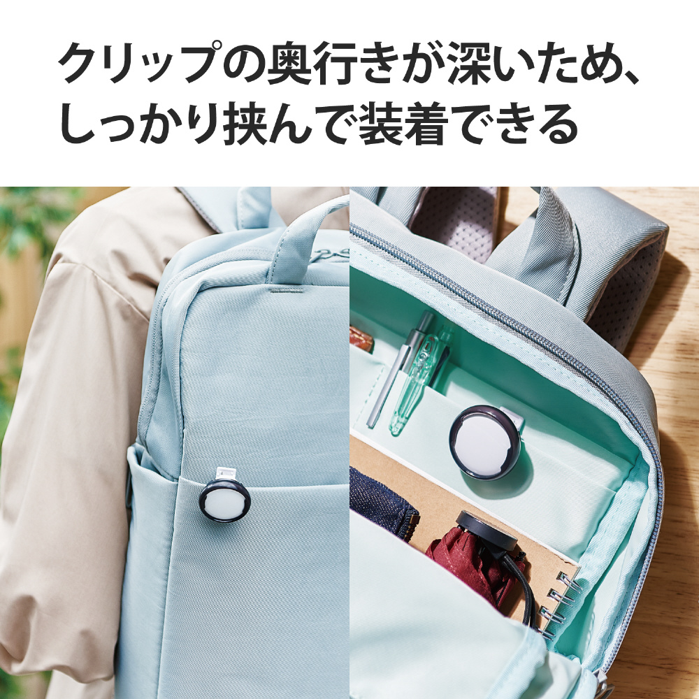 ■クリップの奥行きが深いのでポケットなどにしっかり挟んで装着することが可能です。