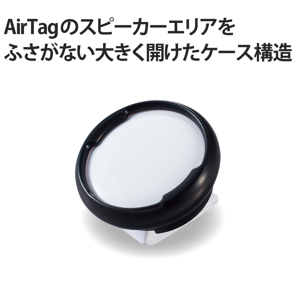 ■AirTag本体の白色側中央部のスピーカーエリアを塞がないように大きく開けたケース構造にしています。