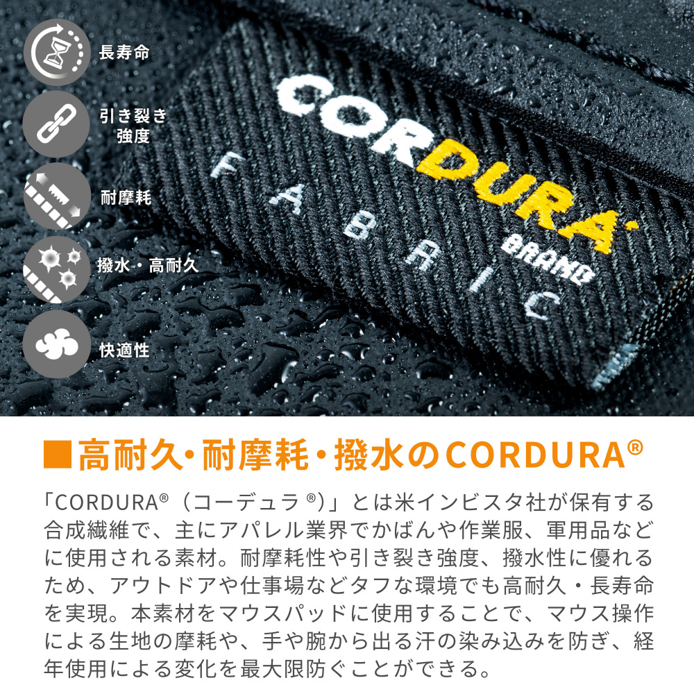 CORDURAの中でも繊維のブレンドと生地の織り方を厳選し、ソフトタイプのマウスパッドながらマウスが非常によく滑るスピード重視派。