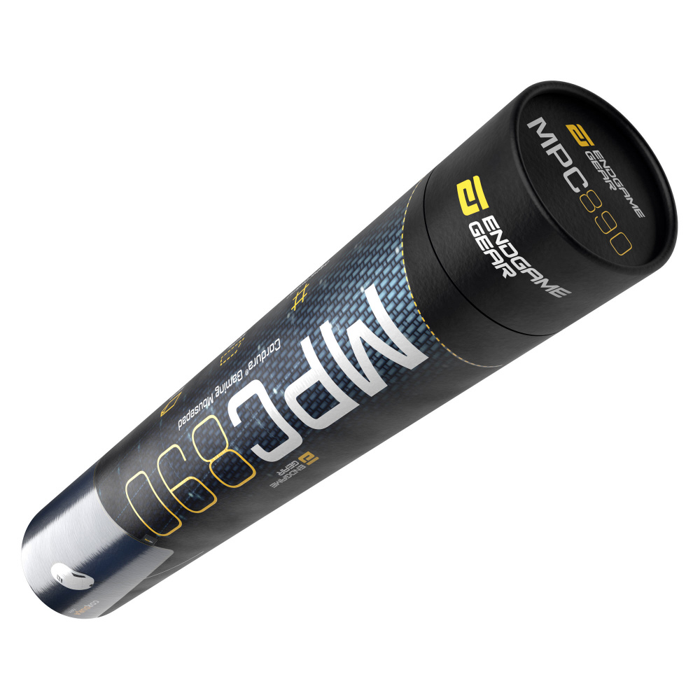 横幅890mmのデスクマットサイズ。マウスやキーボード、マウスバンジー等の周辺機器を余裕もって置くのにちょうどいいサイズ。パッケージは筒型(ブラック・ブルー共通)。