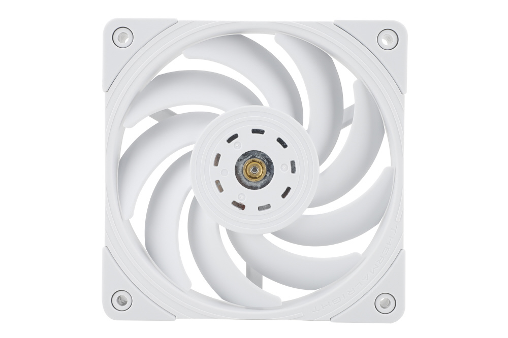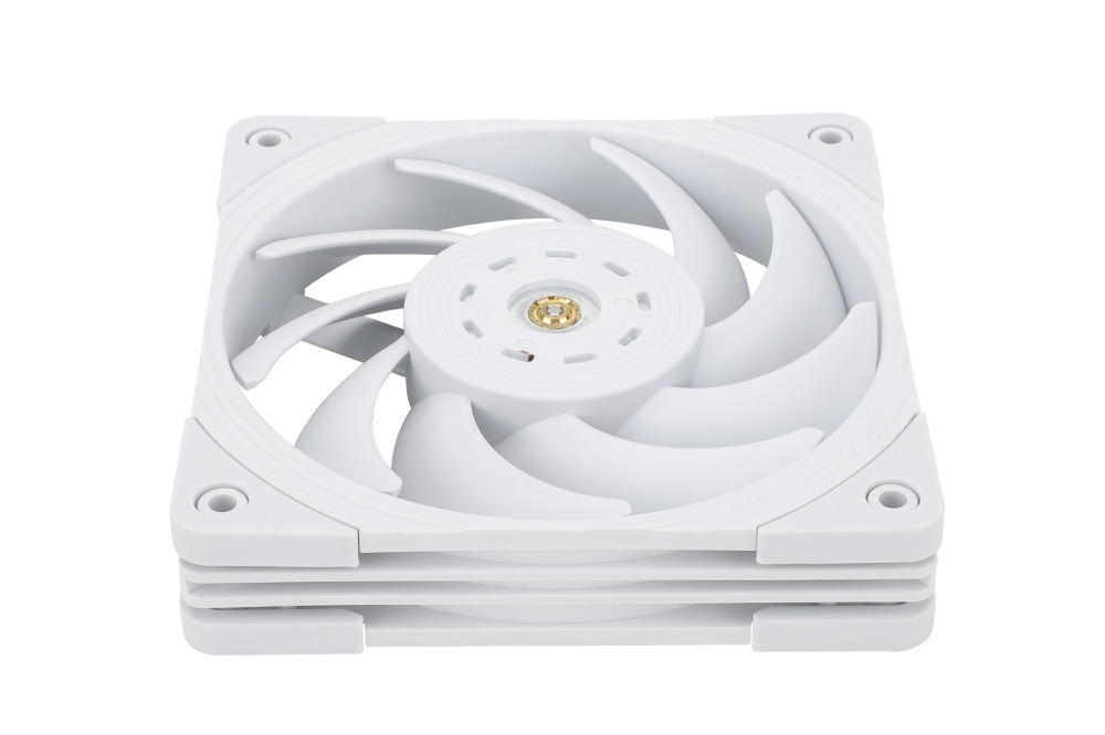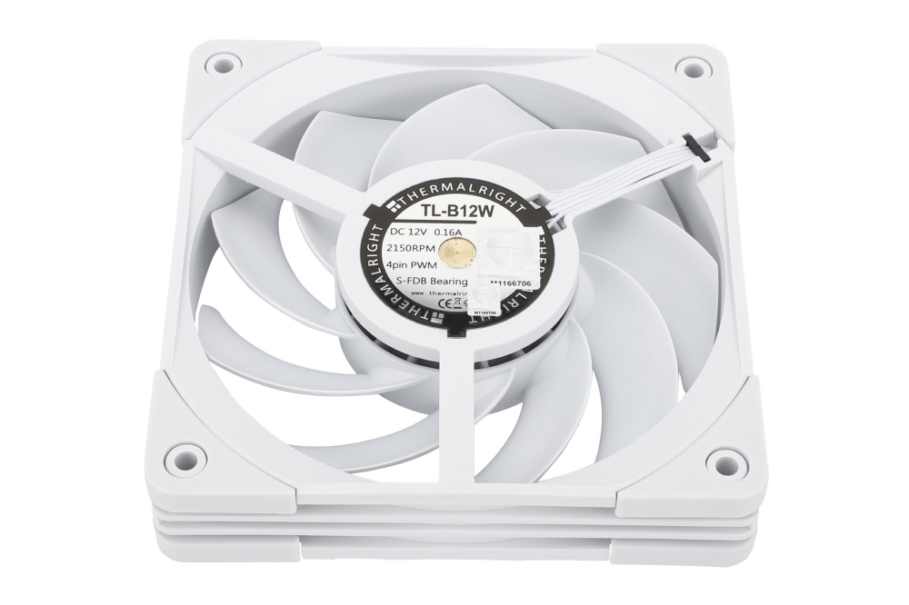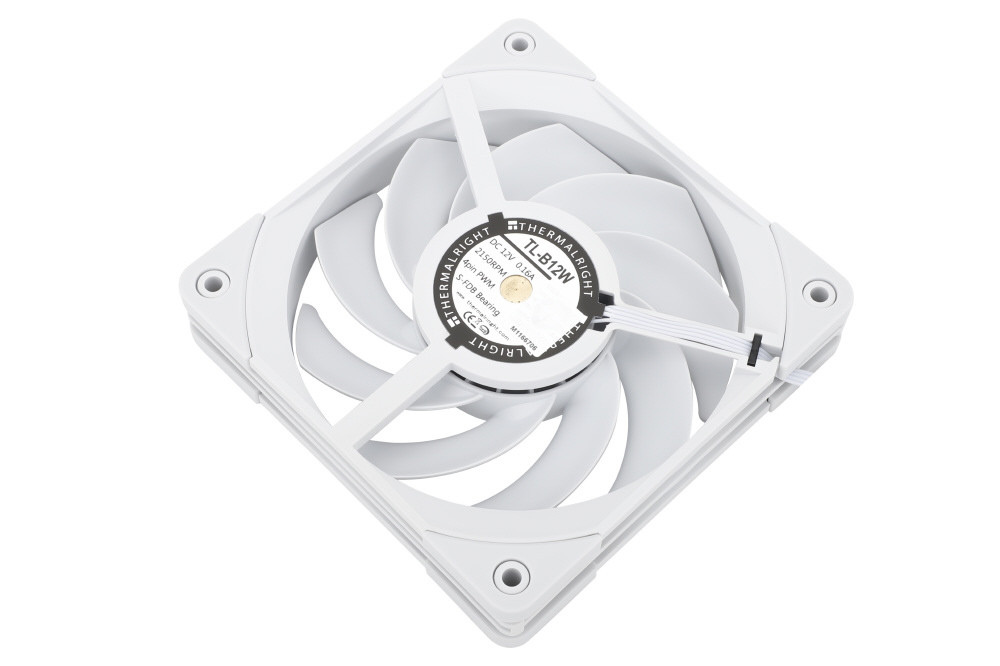 「TL-B12」は、最大風圧2.87mm H2O、最大風量69CFMという高い送風能力を備えた高性能PWMファンです。ベアリングにS-FDB(密閉型流体動圧軸受)を採用しており、高回転時においても安定性と静粛性を損なうことなくファンを回転させます。背面の支持フレームは一般的な十字形ではなく三角対称形になっており、従来より有効面積を23%、ファンの支持強度を20%高めています。