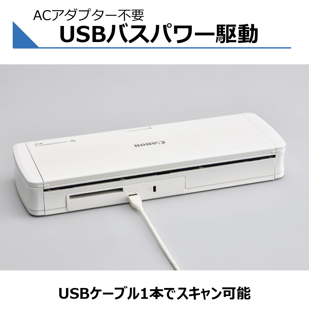 USBポートから電源供給されるため、スキャナー本体を付属のUSBケーブル1本でパソコンと接続するだけで、手軽にスキャンすることができます。そのため本体を充電したり、ACアダプターを持ち歩いたりする必要はありません。