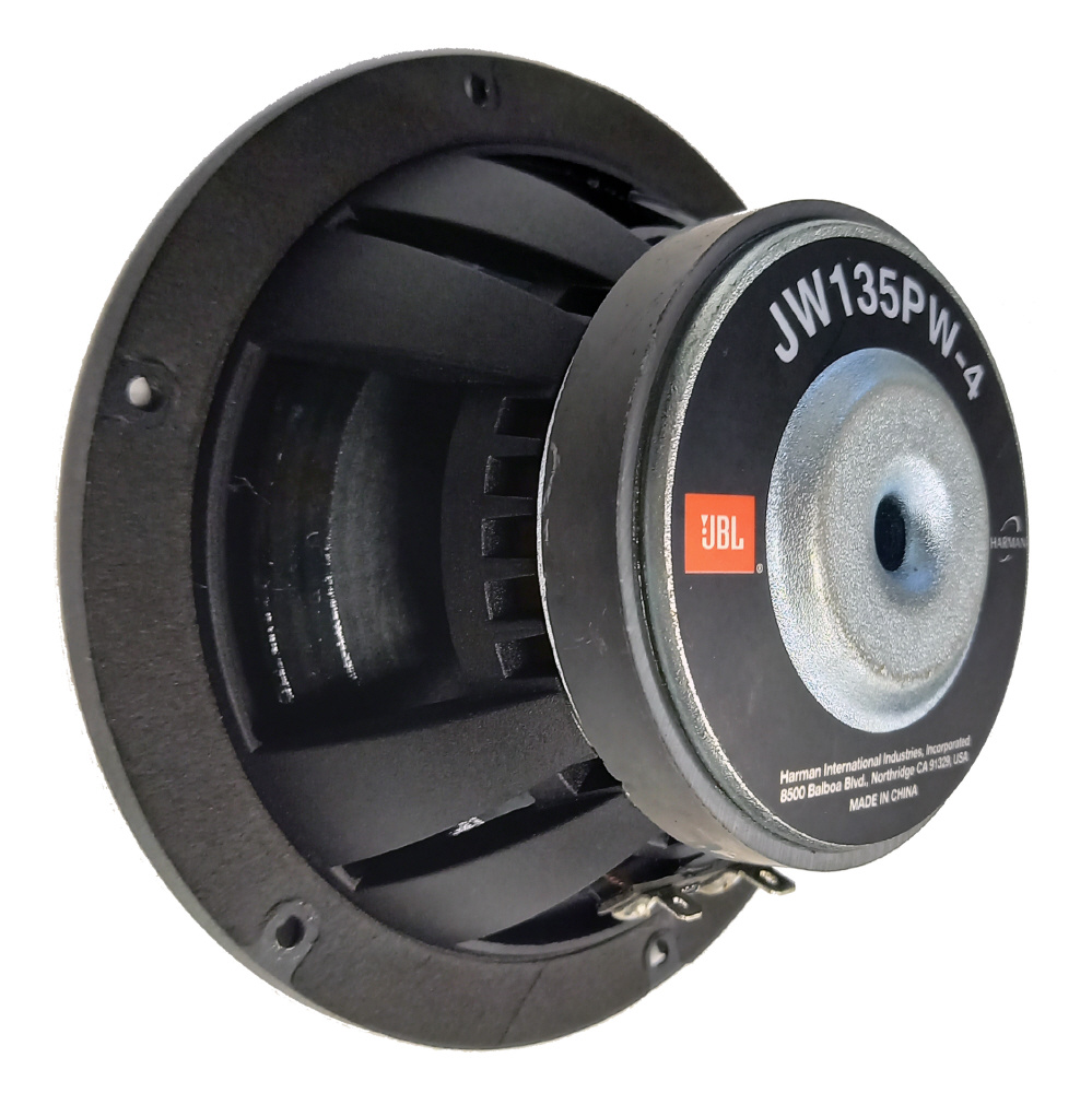 低音域再生用には、JBL独自のSFG対称磁界構造にアルミショートリング、コッパ―キャップを組み合わせた超低歪磁気回路と、堅牢なアルミダイキャスト製フレームを採用し新設計された強力な133mm径ホワイト・ピュアパルプコーン・ウーファー「JW135PW-4」を搭載。上位モデル同様のV字ブレーシングによる内部補強が施された高剛性キャビネットと合わせて、サイズを超えた迫力の低音再生を可能にします。