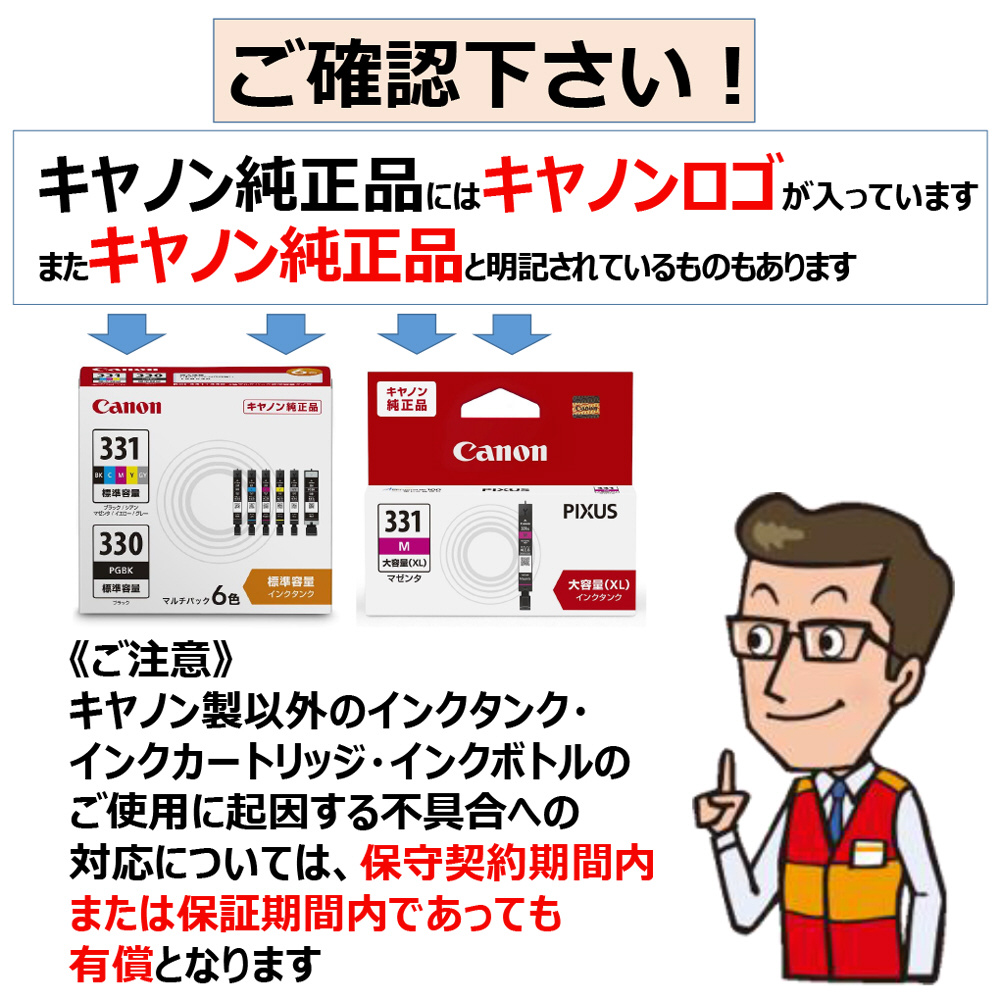 ■キヤノン純正の消耗品(インク・プリント用紙)は、キヤノンインクジェットプリンター専用に開発されています。プリンターの性能を維持し、安定して使用いただくため、キヤノン純正消耗品のご使用をお薦めします。v