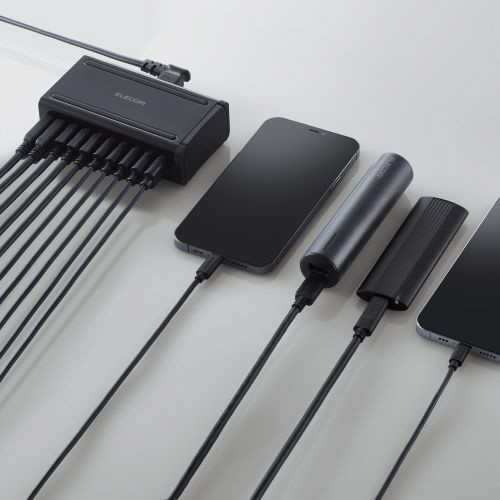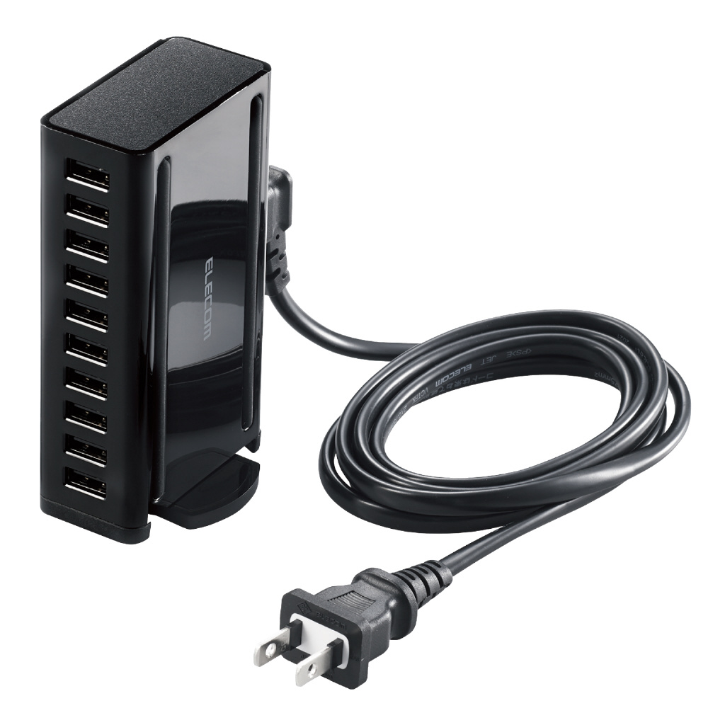 AC充電器/USB充電/卓上多ポート/60W/A10ポート/縦横置 ブラック EC-ACD04BK [10ポート]
