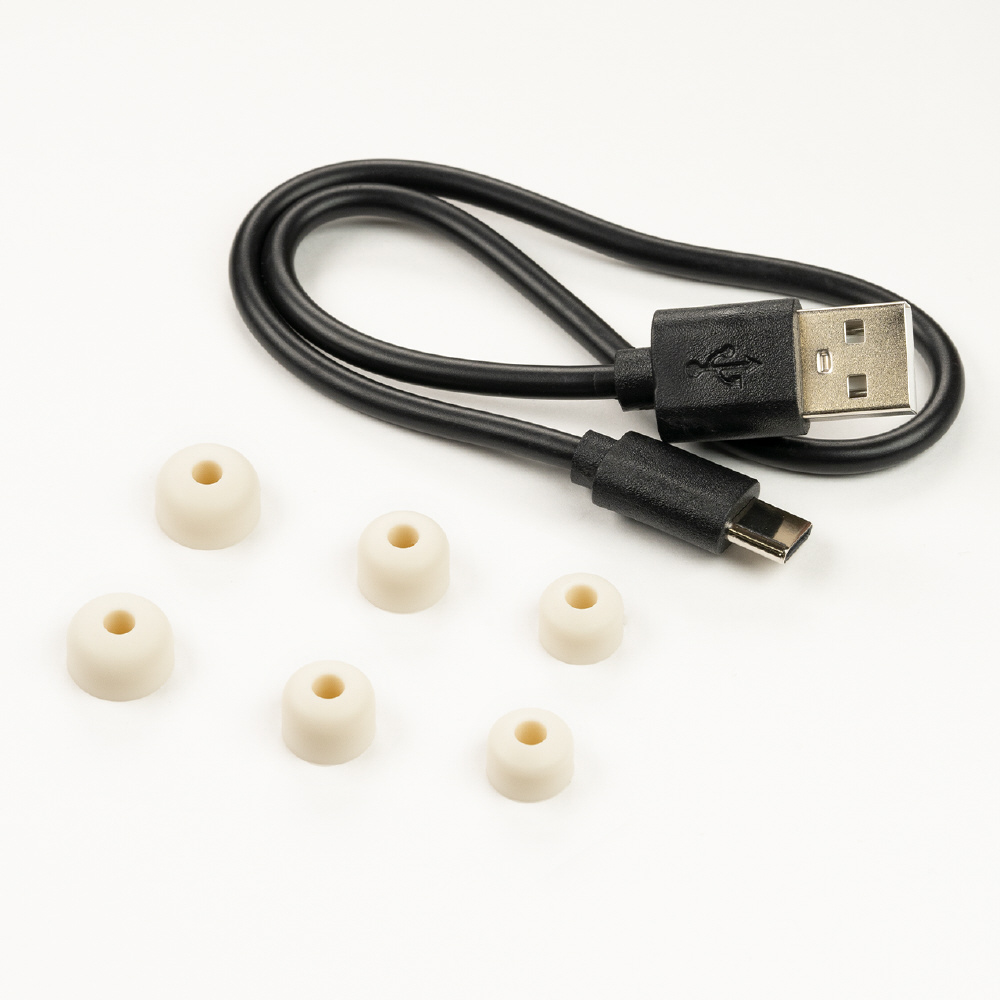 | 付属品 | イヤーピース(S、M、L)×各1セット、USB Type-Cケーブル(充電用)、取扱説明書(保証書) |